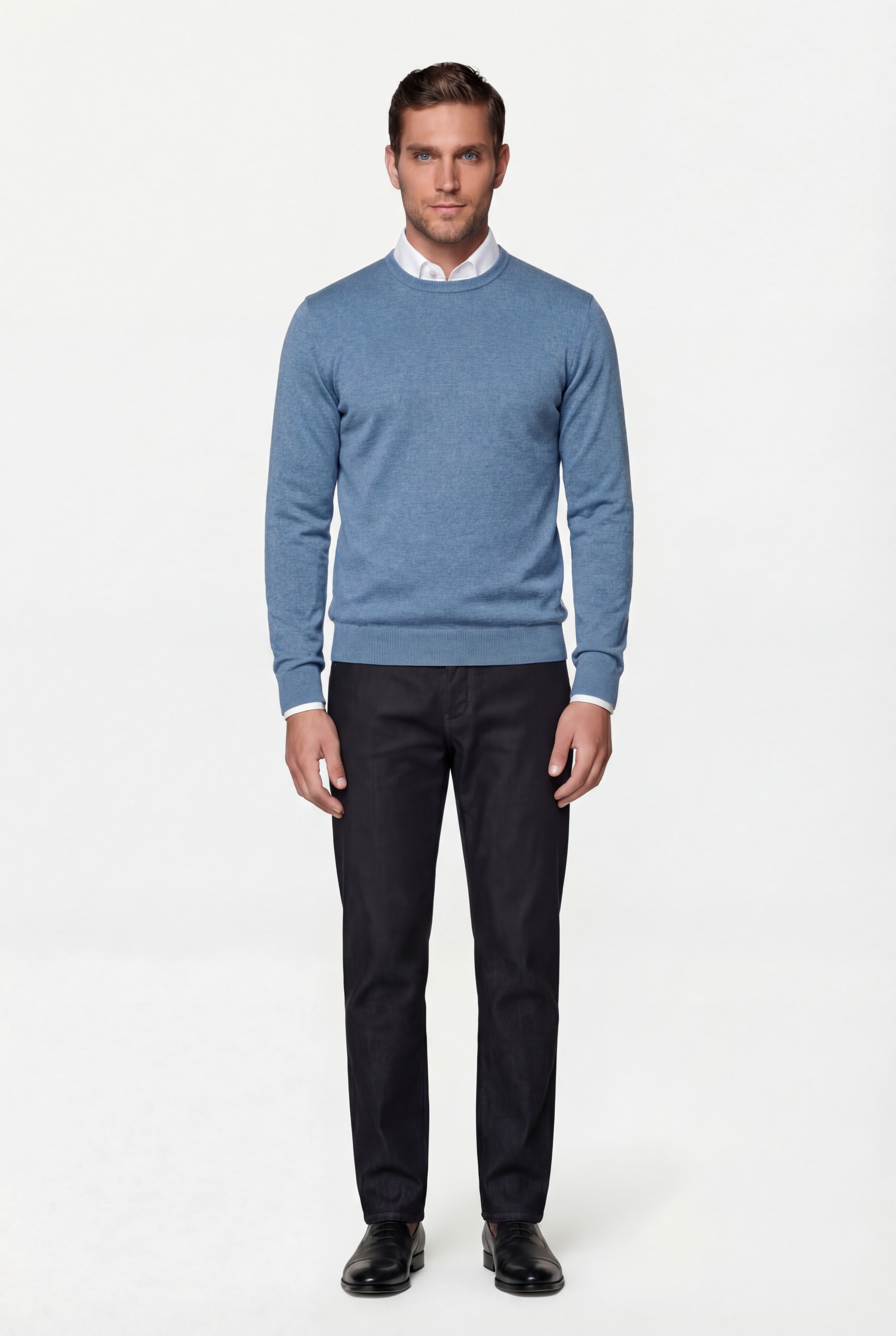 • Приталенный силуэт, Круглый, Однотонный, Голубой