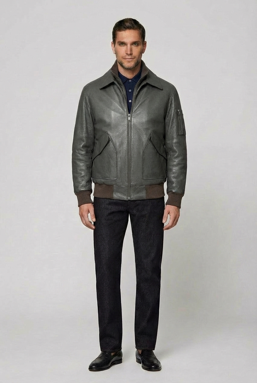 • Куртка-бомбер прямого силуэта из премиальной натуральной кожи ягненка «CROSS». Застежка на молнию. Воротник отложной. Внутри отстегивающаяся манишка с воротником-стойка и отделкой из трикотажа внутри. Низ изделия и рукавов на трикотажной резинке. На левом рукаве карман на молнии. Два боковых кармана с клапанами и застежкой на кнопки. Два вместительных внутренних кармана с застежкой на молнии. В изделии использована эксклюзивная японская фурнитура. Подкладка из ткани с технологией 4D (хлопок + вискоза) прекрасно тянется во все стороны, это дает дополнительный комфорт в носке. В изделии использован наполнитель Comfortemp® производства Freudenberg представляет собой передовой технологический материал, сочетающий в себе идеальный комфорт с высокими теплоизоляционными свойствами, обладает отличной воздухопроницаемостью. Куртка прекрасно подходит для повседневной носки.